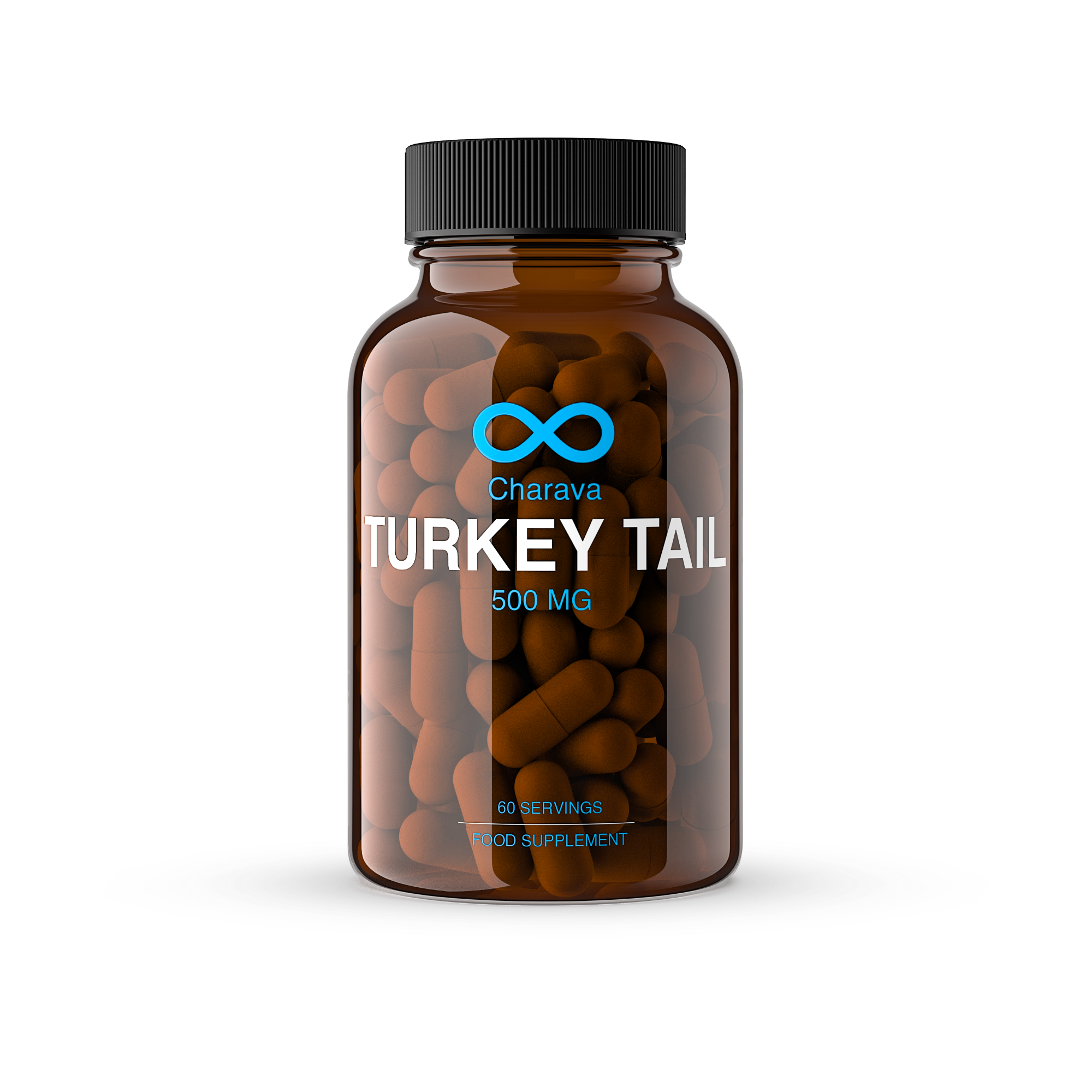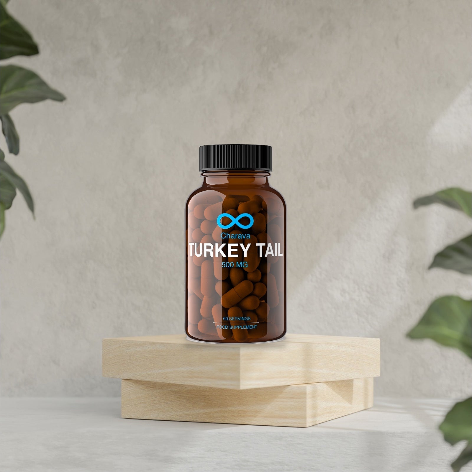 Charava Turkey Tail 500mg offers a clean, potent daily dose of this revered mushroom extract. Each bottle contains 60 vegan capsules made from carefully sourced Turkey Tail mushrooms. With 500mg per capsule, this supplement is crafted to support your immune system, digestion, and energy levels, naturally.