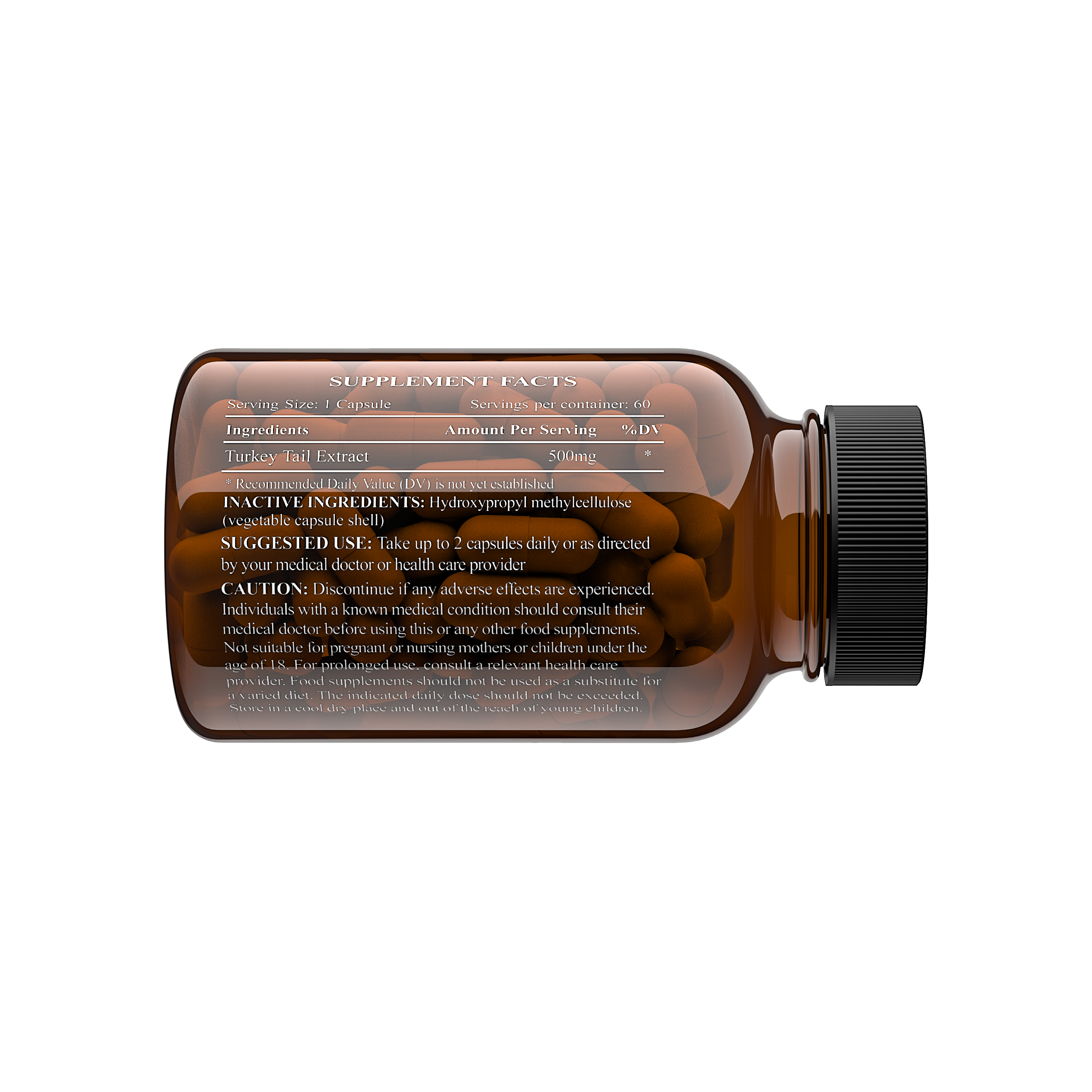 High-Quality Extract 500mg per capsule of pure Turkey Tail mushroom extract.